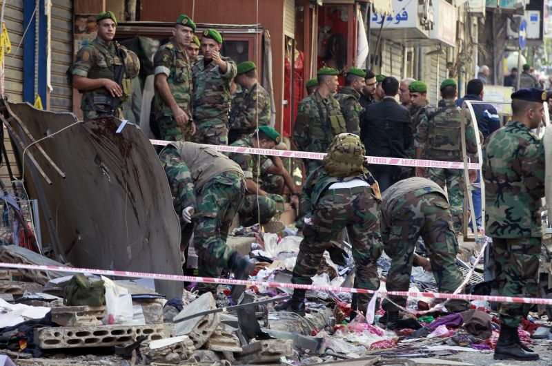 Top image: Lebanese Army soldiers stand guard as others inspect the site a day after a twin suicide attack in Burj al-Barajneh, southern Beirut, Lebanon, Friday, Nov. 13, 2015. Schools and universities across Lebanon are shut as the country mourns the victims of twin suicide bombings that struck a crowded neighborhood south of the capital. (AP Photo/Bilal Hussein)