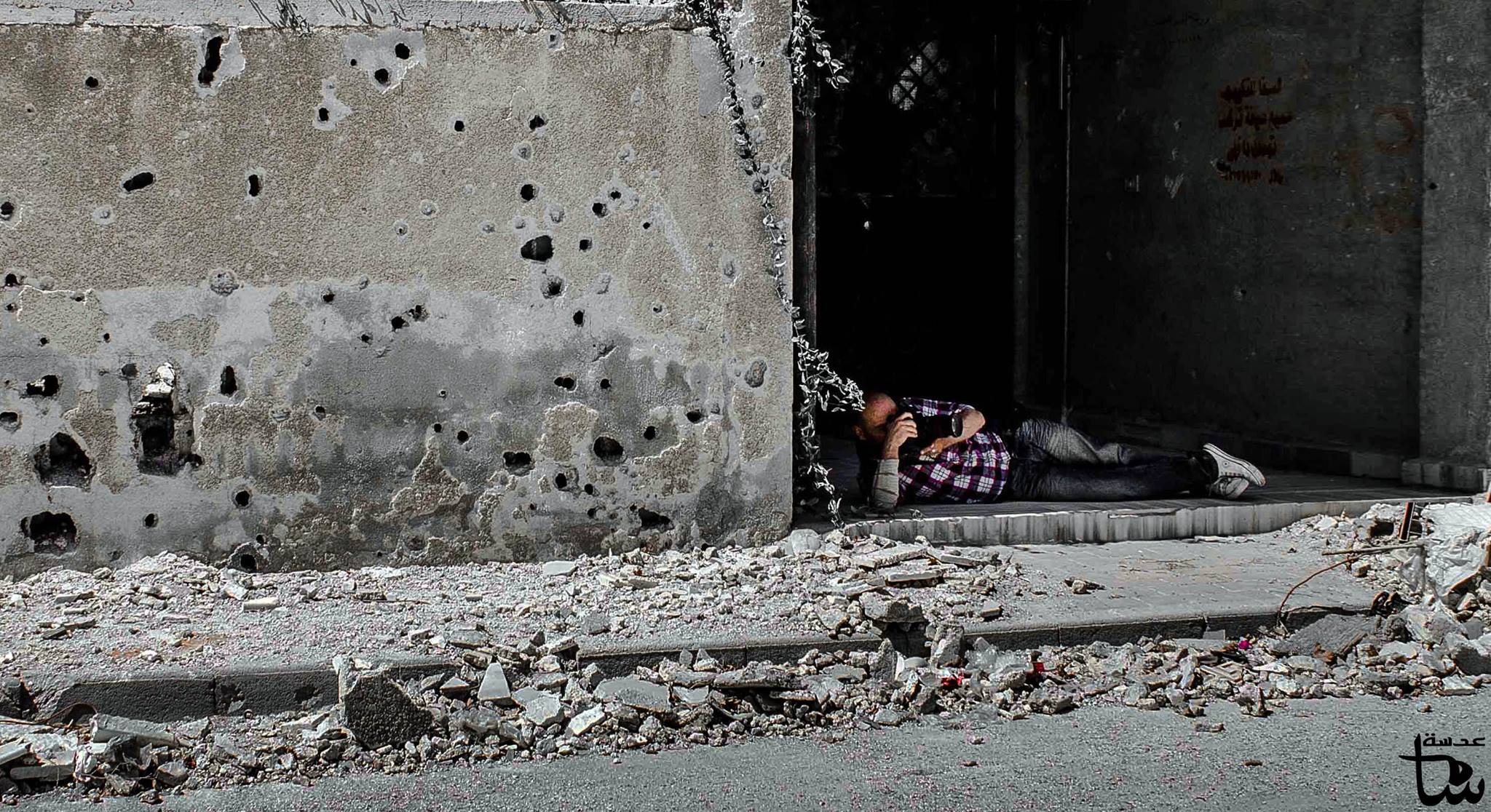 I was taking pictures on the front line in Eastern Ghouta when I got hit by a mortar. It broke my knee and hurt much of my left side – my thigh, my hand, my arm, my shoulder. The recovery was hard. Around this time, the regime started to besiege the area. The army had cut the smuggling route we used to bring in supplies, making it very difficult to find painkillers anywhere in Eastern Ghouta. I stayed in bed for two months.